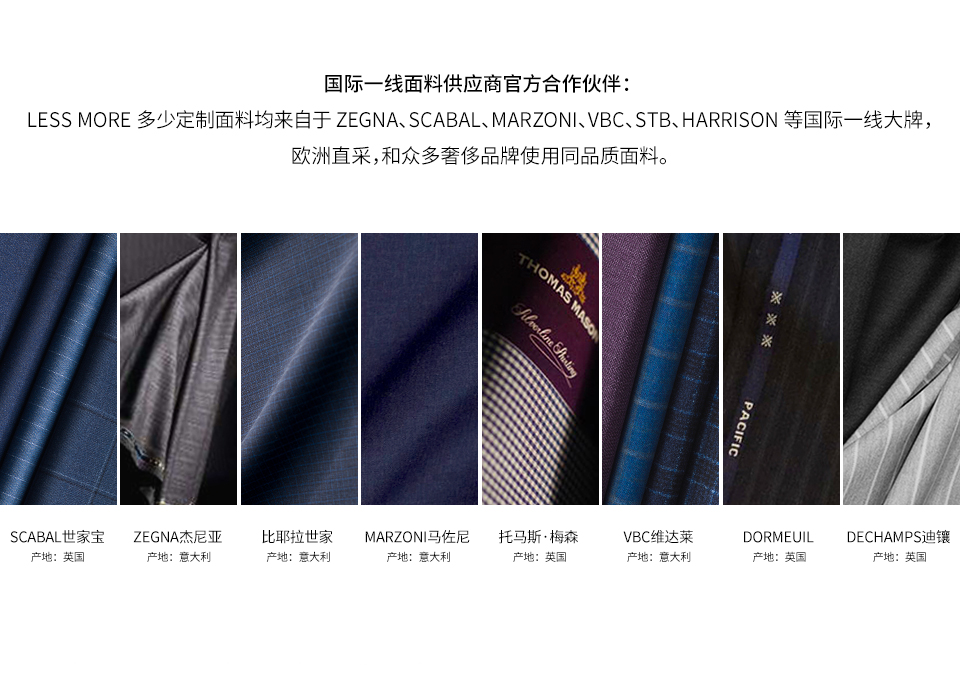 LESS MORE 多少定制是能夠提供男士全品類定制產(chǎn)品的生活方式品牌,對(duì)于中國商務(wù)男士來說,定制是對(duì)西裝最認(rèn)真的態(tài)度。